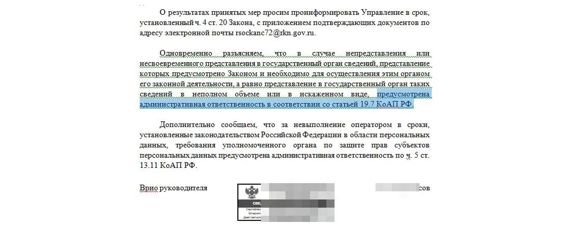 Если что-то не соответствует закону, на исправление регулятор дает 10 рабочих дней. Это немного: нужно успеть переписать формы, проверить документы, обновить политику и доказать, что данные клиентов собираются по правилам.